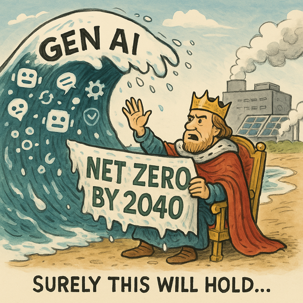Where does this leave us? With the uncomfortable truth that the evolutions in technology don’t seem compatible with a happy planet. But an acceptance that we are not King Canute, and we know we can’t hold back the tide. We can be choiceful in how and when we use these technologies.