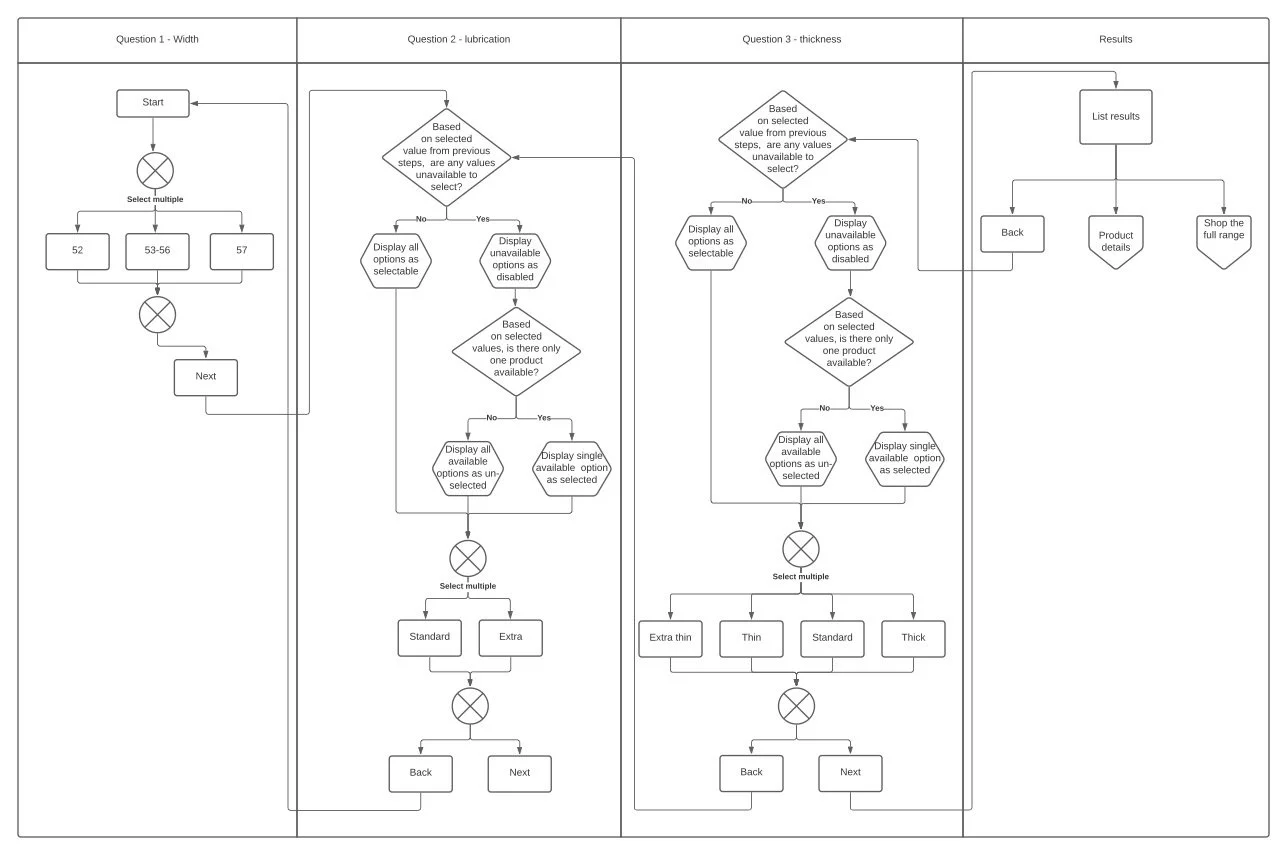 The tool was designed primarily for men looking to find the right condom for their preferred sexual experience. It needed to support ease of choice, remove confusion, and help users feel more confident in their selection — especially for those unfamiliar with the updated range.